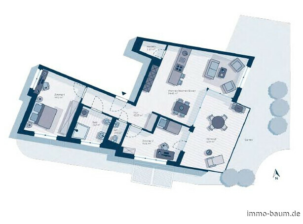 Diese hochwertige 3-Zimmer-Neubauwohnung im Erdgeschoss vereint modernen Wohnkomfort mit zeitloser Eleganz und ökologischer Nachhaltigkeit. Auf rund 106 m² Wohnfläche finden Sie hier nicht nur ein großzügiges Raumkonzept, sondern auch exklusivste Ausstattungsmerkmale, die keine Wünsche offenlassen. Die Wohnung überzeugt durch ihre durchdachte Raumaufteilung und bietet zusätzlich einen privaten Garten, der Ihnen ein hohes Maß an Lebensqualität und Rückzugsort inmitten der Natur ermöglicht. Bereits beim Betreten der Wohnung werden Sie von einer großzügigen Diele empfangen, die einen einladenden Übergang in den lichtdurchfluteten Wohn- und Essbereich und den Zimmern schafft. Die offene Raumgestaltung in Verbindung mit raumhohen Fenstern sorgt für eine freundliche und luftige Atmosphäre, die den gesamten Raum mit natürlichem Licht erfüllt. Die direkte Anbindung an die Terrasse und den angrenzenden Garten erweitert den Wohnbereich und bringt das Leben ins Freie. Hier können Sie entspannen, den Tag ausklingen lassen oder in aller Ruhe Ihre Zeit genießen - der private Garten wird zum Herzstück der Wohnung. Das moderne Badezimmer überzeugt nicht nur durch hochwertige Sanitärobjekte, sondern auch durch seine elegante Gestaltung. Die bodentiefe Dusche, das Fenster, sowie der stilvolle Handtuchheizkörper ergänzen sich perfekt und sorgen für ein rundum angenehmes Nutzungserlebnis. Elegante Bodenfliesen harmonieren mit den modernen Elementen und schaffen eine luxuriöse Atmosphäre. Ein zusätzliches Gäste-WC rundet das Angebot ab und bietet Gästen eine eigene Privatsphäre. Alle Wohn- und Schlafräume sind mit Parkett ausgestattet, das dem gesamten Raum eine warme und behagliche Atmosphäre verleiht. Die offene Küche fügt sich perfekt in das Gesamtkonzept der Wohnung ein. Ein praktischer Abstellraum sorgt für zusätzlichen Stauraum und Ordnung. Zur Wohnung gehört ein Tiefgaragenplatz, der durch eine Wall-Box für die Aufladung von Elektrofahrzeugen ausgestattet ist - eine praktische Lösung für umweltbewusste Mobilität. Der Tiefgaragenplatz kostet zusätzlich für 35.000 EUR. Rufen Sie an und vereinbaren Sie einen Besichtigungstermin.Fußbodenheizung: Eine durchdachte Fußbodenheizung sorgt für angenehme Wärme in allen Räumen und trägt zu einer angenehmen Raumtemperatur bei.